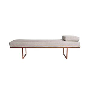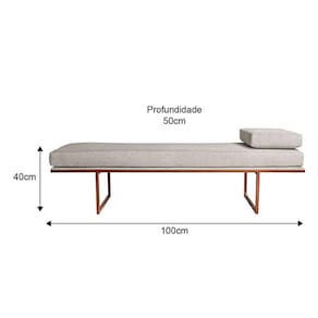 banco 2 lugares galli linho bege e dourado 100 cm