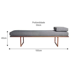 banco 2 lugares galli linho cinza e dourado 100 cm