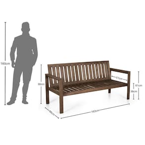 É construído em madeira maciça de eucalipto, e o acabamento rústico é feito com STAIN na tonalidade Nogueira. Esse tipo de acabamento não forma filme, permitindo que a madeira trabalhe de acordo com as condições climáticas, além de possuir proteção UV e hidrorepelente. Acabamento da Estrutura: Stain Altura do assento até o chão: 36 Altura do Encosto: 44 Altura Regulável: Não Ambiente Principal: Jardim e Varanda Complexidade da Montagem: Baixa: pode ser montado por uma pessoa sozinha Cor: Nogueira Cor do Produto: Nogueira Escala de Brilho: Fosco Itens Inclusos: 1 Banco Linha ou Coleção: Orquídea Manual de Montagem e Instalação: https://cdn2.madeiramadeira.com.br/atributo/viva-ligna/1394938-banco-orquidea-3-lugares-ref-6003.pdf Material da Estrutura: Madeira Maciça Material do Assento: Madeira Maciça Material do Encosto: Madeira Maciça Material Principal: Madeira Maciça Necessita Montagem: Sim Origem do Produto: Nacional Peso: 14 Possui Almofada no Assento: Não Possui Apoio para Braços: Sim Recomendações de Uso, Manutenção e Limpeza: Na limpeza não utilizar produtos químicos e abrasivos, usar apenas um pano umedecido, para garantir a maior durabilidade do móvel. Por ser um produto produzido 100% de madeira, pode possuir nós, reveses e diferença na tonalidade de cor das peças, isso é normal e atesta a autenticidade da madeira marroml. Como outras madeiras, o eucalipto também reage às condições de uso e clima, e por isso necessita de alguns cuidados para sua conservação. Alterações bruscas de clima ou longas exposições à condições severas de calor, frio, clima seco ou chuvas podem ocasionar desequilíbrios no comportamento da madeira, ocasionando pequenas fissuras, estas fissuras são normais e tendem diminuir com o restabelecimento das condições normais do clima. Para amenizá-las, sempre que possível recolha seu móvel a áreas cobertas ou fechadas. Caso isso não seja possível, é de extrema importância que a reaplicação do óleo Stain seja feita periodicamente conforme necessidade. Essa reaplicação é muito simples, aliada ao reaperto periódico Resistente à Chuva: Sim Sistema de Montagem: parafuso Suporta Até (kg): 140 Tipo de Encosto: Fixo Tipo de Madeira Maciça: Eucalipto Marca: Viva Ligna Ean: 7909903359914
