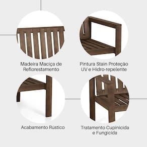 Linhas retas e simétricas fazem do Banco Orquídea 3 Lugares uma linda peça que vai deixar sua varanda ou piscina ainda mais especial. Você pode aproveitar seu tempo sentado à sombra ou ao sol no produto com toda a autenticidade e rusticidade da madeira.