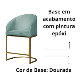 Banco Banqueta Alta Poltrona Mia Base Metal Dourada Veludo acqua - Azul