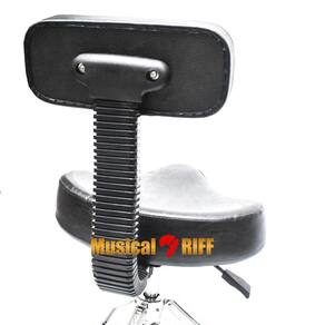 Uma das principais características deste banco é o encosto acolchoado, que oferece suporte adicional para as costas. Isso é especialmente útil para os bateristas que preferem ter um apoio extra ao tocar por longos períodos de tempo, ajudando a reduzir a fadiga e o desconforto nas costas.