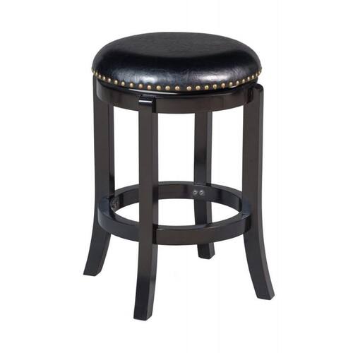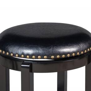 Banqueta giratória redonda de couro sintético Benjara Nailhead Trim com perna larga, preta - consiste apenas em um banquinho de balcão de estilo transitório.
