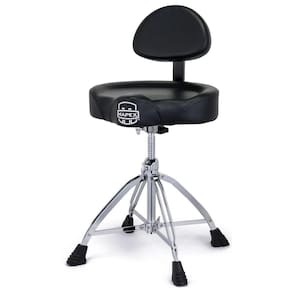 Banco de Bateria Mapex T875 Serie 800 Descrição O Banco de Bateria Mapex T875 Série 800 é a escolha definitiva para bateristas que priorizam conforto absoluto, estabilidade reforçada e suporte lombar prolongado. Equipado com um assento estilo sela acolchoado de 43,18 cm por 10,16 cm, revestido em vinil macio, e encosto ajustável para as costas, este modelo proporciona excelente ergonomia e postura durante ensaios e apresentações. Seu design com pernas inclinadas em formato biomecânico permite total liberdade de movimento, enquanto a borda elevada do assento auxilia na manutenção do equilíbrio corporal mesmo em execuções intensas. Construído com engenharia robusta, o T875 conta com estrutura de quatro pernas duplas e uma perna adicional com reforço extra, oferecendo uma base extremamente firme e segura. O sistema de ajuste de altura com barra de aço roscada varia entre 48,26 cm e 63,5 cm e é complementado por um mecanismo lock giratório que aumenta a estabilidade entre assento e eixo. Com pés antiderrapantes extra largos e montagem por grampo ultra seguro, este banco atende com excelência aos músicos que exigem resistência, conforto prolongado e apoio para a coluna em um único equipamento. Especificações Técnicas - Tipo: Banco de bateria com encosto - Assento: Selim acolchoado de 43,18 cm x 10,16 cm - Revestimento: Vinil macio - Encosto: Ajustável - Sistema de altura: Espiga de aço roscada com trava giratória - Faixa de altura: 48,26 cm a 63,5 cm - Pernas: 4 pernas duplas com reforço adicional - Pés: Emborrachados antiderrapantes extra largos - Montagem: Sistema de grampo ultra seguro Dimensões e Peso - Comprimento: 43,18 cm - Largura: 43,18 cm - Altura: 63,5 cm - Peso: 7,2 kg : 3 meses de pelo fabricante. Origem: China Imagens meramente ilustrativas, podendo haver variação de cor Marca: Não Informado