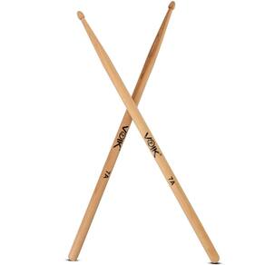 Baqueta: • Marca: Voik • Modelo: 7A • Madeira: Maple • Formato da Ponta: Oval • Diâmetro da baqueta: 1,8 mm • Diâmetro da ponta da baqueta: 0,8 mm • Comprimento: 39 cm • Peso do par: 64 g