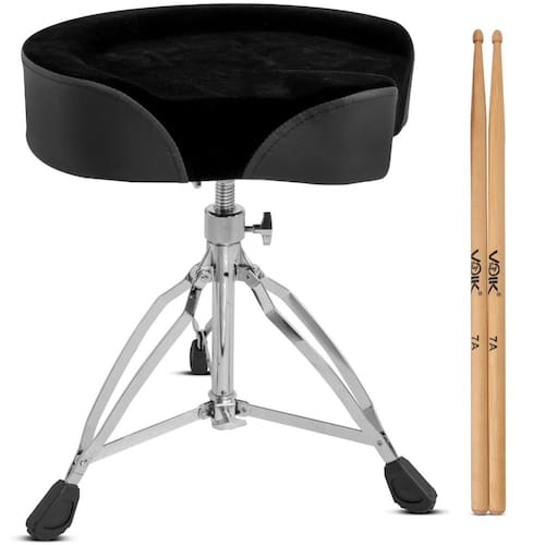 Itens Inclusos 01 Banco de Bateria Voik B-1400 Couro Preto Regulável 160kg 01 Par de Baqueta Voik 7A Marca: Não Informado