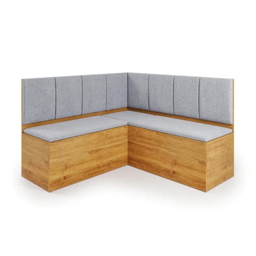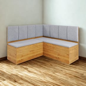 O baú integrado oferece espaço extra para organização, e sua principal vantagem é a otimização do espaço garantindo mais circulação interna na sala de jantar ou cozinha, sem abrir mão do charme de um ambiente bem decorado para as refeições.