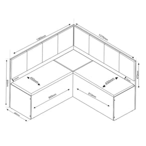 - Dimensões do Produto (LarguraXProfundidadeXAltura) Lado Maior= 137,5x46,5x90,5 / Lado Menor= 136x46,5x90,5;