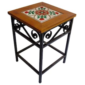 Banco De Ferro E Madeira Rústico Com Ladrilho Hidráulico Azulejo Ladrilho B3 - Marrom