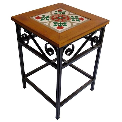 Banco De Ferro E Madeira Rústico Com Ladrilho Hidráulico Azulejo Ladrilho B3