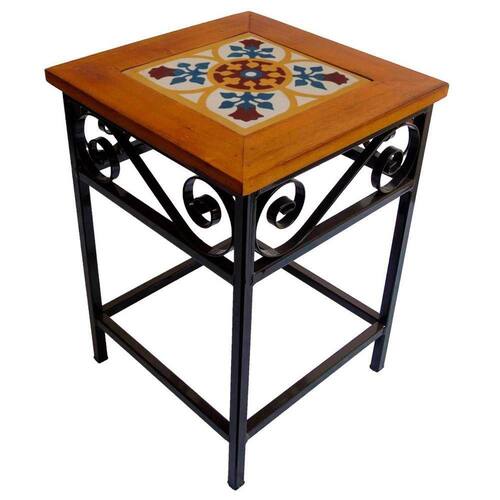 Banco De Ferro E Madeira Rústico Com Ladrilho Hidráulico Azulejo Ladrilho B4 - Marrom
