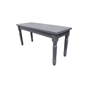 O banco tem um tampo de madeira. Características: Acabamento: cinza rústico Material: madeira maciça, madeira projetada, folheado Inclui um (1) banco A montagem é necessária Especificações: Dimensões do banco: 40 “L x 14" P x 18,5” H Capacidade de peso: 300 libras Material da superfície: madeira maciça, madeira projetada, folheado - Acabamento: cinza rústico - Material: madeira maciça, madeira projetada, folheado - Inclui Uma (1) bancada - A montagem é necessária