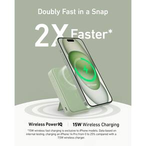 Banco de energia Anker MagGo, carregador portátil ultrarrápido de 15 W compatível com MagSafe, bateria de 10.000 mAh com tela inteligente e suporte dobrável, somente para iPhone 15/14/13/14 (cabo USB-C incluído) - Carregamento Qi2 rápido e eficiente: experimente o futuro do carregamento com nosso carregador sem fio de 15 W, certificado Qi2 para carregamento rápido, seguro e eficiente. Com evidências de desempenho de ponta, obtenha sua série iPhone 15 de 0 a 50% em apenas 44 minutos. - Display inteligente informativo: acompanhe a jornada de carregamento do seu dispositivo. De porcentagens de bateria a tempos completos de recarga, a tela inteligente intuitiva garante que você esteja sempre atualizado. - Ligue e apoie: com potentes 10.000 mAh, proteja 1,8 cargas para seu iPhone 15 Pro e desfrute da visualização sem usar as mãos com o suporte embutido. - O que você obtém: Anker MagGo Power Bank (10K), cabo USB-C para USB-C de 2 pés (0,6 m), guia de boas-vindas, garantia de 24 meses e nosso amigável atendimento ao cliente. - Nota de compatibilidade: este banco de energia é otimizado para a série iPhone 12/13/14/15 com recursos de carregamento magnético rápido de 15W. Embora possa carregar dispositivos Android, como telefones Samsung e Google, eles não suportam o recurso magnético nem atingem a velocidade de carregamento sem fio de 15 W e carregam com menor eficiência.