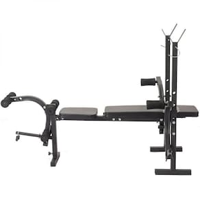 OBanco de Supino 44282 WCT Fitness Possui uma enorme variedade de exercícios É possível fazer flexão de pernas e extensão nele. Essa estação não acompanha as anihas, porém voce adiciona as mesmas anilhas redondas que são padrões para exercitar pernas, costas, remada e puxada. Suas espumas são confortáveis, macias e tem uma longa durabilidade. Possui uma base firme não deixando o banco balançar durante exercicios. Suporta um usuário de até 180kg. Permite que o usuário realize exercicios para pernas como: flexora e extensora. Banco de supino reforçado para fazer supino inclinado e reto.