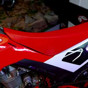 O banco elevado entrega um assento cerca de 20mm mais alto que o banco anterior da Crf 250f, proporcionando um melhor posicionamento na hora de pilotar.