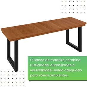 O banco apresenta um tampo em madeira maciça ripada, que oferece uma estética sofisticada e textura rica, ideal para diversos ambientes. Sua base em aço confere robustez e estabilidade, garantindo durabilidade e um suporte seguro. A combinação de madeira e metal proporciona um contraste elegante e moderno, tornando este banco uma peça marcante para diversos ambientes. Acabamento da Estrutura: Pintura Ambiente Principal: Sala de Jantar Complexidade da Montagem: Baixa: pode ser montado por uma pessoa sozinha Cor: Preto/ Madeira Cor do Produto: Preto/ Madeira Escala de Brilho: Semi-Fosco Itens Inclusos: 1 Banco, manual de montagem e kit ferragens. Manual de Montagem e Instalação: https://product-hub-prd.madeiramadeira.com.br/961331/documents/b9a0173d-c0ea-4657-bb16-6393ad1b70a02482750493817295321616037.pdf Marca: PAONANDA DECOR Material do Assento: Madeira Maciça Material dos Pés: Aço Material Principal: Madeira Maciça Necessita Montagem: Sim Origem do Produto: Nacional Peso: 15,08 kg Possui Almofada no Assento: Não Possui Apoio para Braços: Não Recomendações de Uso, Manutenção e Limpeza: Utilizar um pano levente umedecido, não utilizar solventes e produtos de limpeza. Resistente à Chuva: Não Sistema de Montagem: Parafusos Suporta Até (kg): 120 kg Tipo de Madeira Maciça: Eucalipto Marca: PAONANDA DECOR