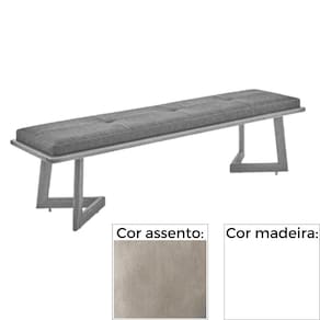 Banco MH-5347 Herval 155 cm Madeira Laca Fosca Branca Assento Estofado Cinza A2 - Branco