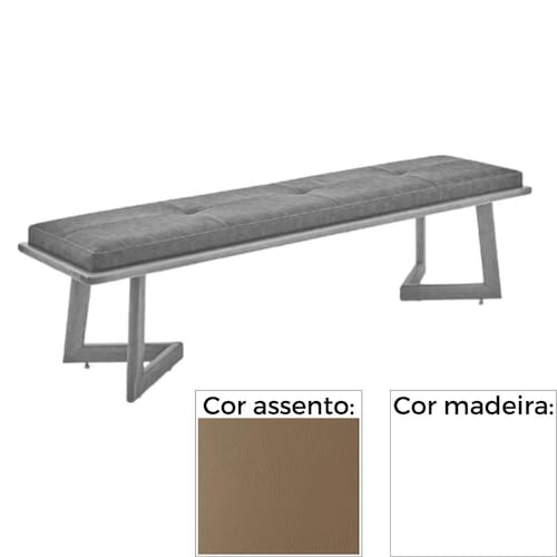 Banco MH-5347 Herval 155 cm Madeira Laca Fosca Branca Assento Estofado Marrom A