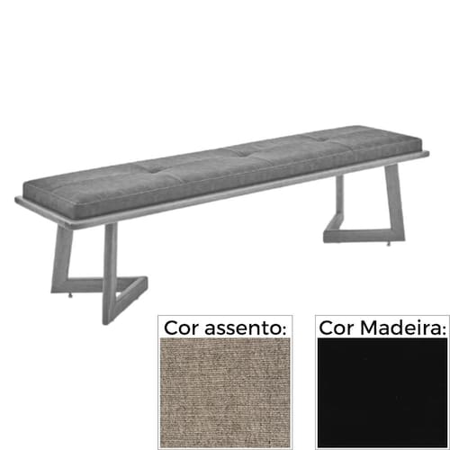 Banco MH-5347 Herval 155 cm Madeira Laca Fosca Preta Assento Estofado Marrom A6