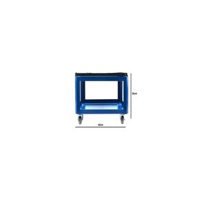 Especificações técnicas: Fabricado em aço carbono; 4 rodízios giratórios de 2; Colunas arredondadas: Chapa 1,20mm Bandejas em chapa: 0,60mm; Capacidade: até 120kg Cor: Azul.