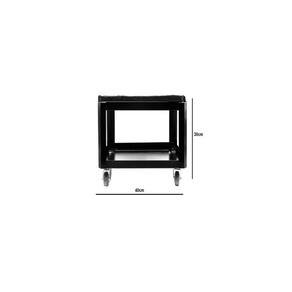 Especificações técnicas: Fabricado em aço carbono; 4 rodízios giratórios de 2; Colunas arredondadas: Chapa 1,20mm Bandejas em chapa: 0,60mm; Capacidade: até 120kg Cor: Preto