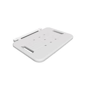 Especificações Técnicas: Assento Plástico PE com espessura 30 mm. Estrutura metálica em Inox 304. Sistema de Travamento na vertical. Tamanho: 50 x 42 cm. Suporta 150 kg. Cor: Branca. Parafusos e Buchas enviados juntamente com o Produto.