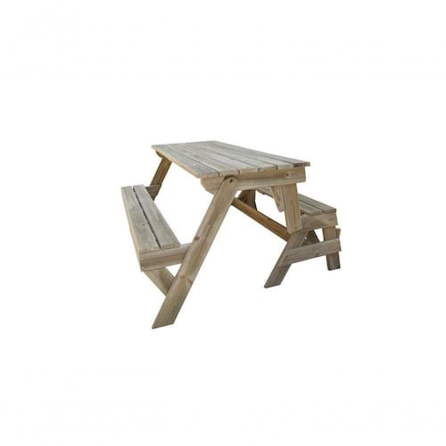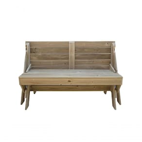 BANCO QUE VIRA MESA 1,5m PARA ÁREA EXTERNA TRATADA EM AUTOCLAVE COM TAMPO E ASSENTOS RIPADOS SEM VERNIZ