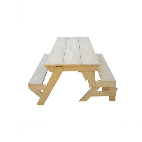 BANCO QUE VIRA MESA 1m PARA 04 PESSOAS COM TAMPO E ASSENTOS EM TÁBUAS SEM VERNIZ