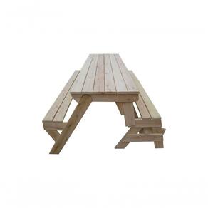 BANCO QUE VIRA MESA 2m EUCALIPTO PARA 06 PESSOAS COM TAMPO E ASSENTOS RIPADOS SEM VERNIZ