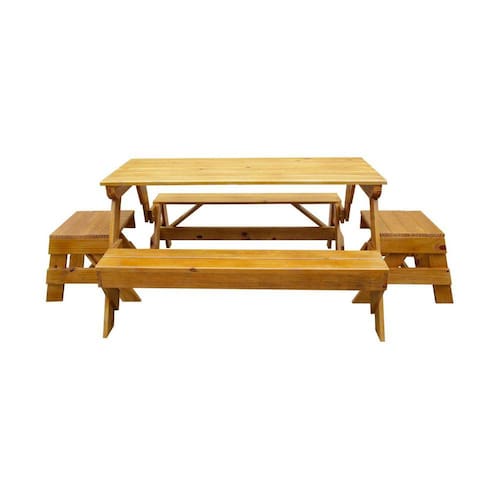 Comporta até 4 pessoas no modo banco e até 8 pessoas no modo mesa. Pode-se acomodar confortavelmente até 10 pessoas utilizando as duas pontas da mesa. Suporta mais de 300kg em cada assento em forma de Mesa.
