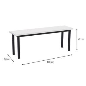Características Técnicas: Produto: Banco Marca: Geeb Work Tampo Cor: Branco Base: Preto Capacidade: 4 lugares Indicação de Uso: Refeitórios, vestiários, áreas de convivência, empresas, escolas, indústrias e escritórios Tipo: Banco fixo de uso coletivo Design: Clean, minimalista e funcional Acabamento: Superfície lisa e fácil de limpar Construção: Estrutura projetada para alta resistência ao uso frequente Assento: Base reta projetada para estabilidade e conforto rápido