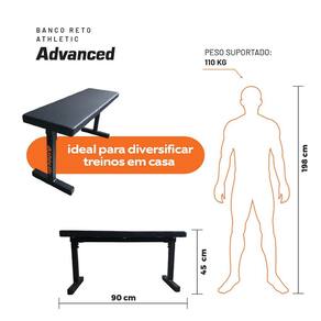 Banco reto Athletic Advanced Estrutura metálica Estofamento com espuma Revestimento sintético Capacidade de até 110 kg Dimensões compactas