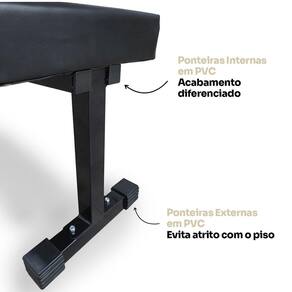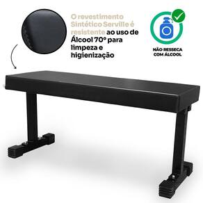 Características principais: Modelo: banco reto para musculação Material: estrutura de aço com pintura eletrostática Estofado: mdf 18mm. Espuma de densidade d33, revestido com tecido servile Base: pés com acabamento em pvc Dimensões: OAltura total: 44 cm OAltura do estofado: 7 cm OLargura: 32 cm OComprimento: 92,5 cm OEspaço entre os pés: 80 cm Peso máximo suportado: 160 kg Compacto, leve e resistente: ideal para treinos em casa e academias