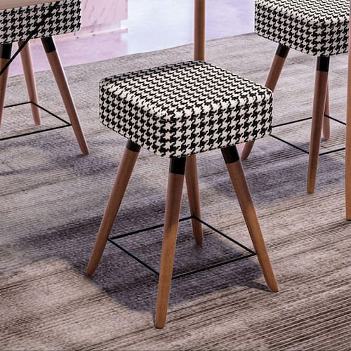 Base do assento em MDF e MDP de 15MM; Utilizamos na montagem e tapeçaria grampos galvanizados;Arco em aço, com pintura especial epóxi;