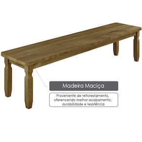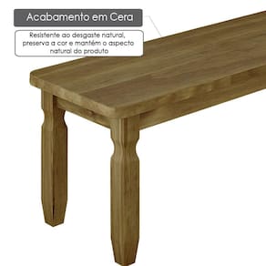Banco Rústico 1, 80 m Ideal P/ Area Externa - Madeira Maciça - Acabamento CeraÓtima opção para quem deseja compor os ambientes com bancos de elegância e conforto no estilo rústico. Produzido com Madeira Maciça, proveniente de reflorestamento, fornecendo mais resistência e maior durabilidade. A pintura em Cera completa o acabamento mantendo o aspecto natural do produto.Características- Cera- Produzido com Madeira Maciça- 01 unidade- Pintura com Cera, resistente ao desgaste natural, preserva a cor e mantém o aspecto natural do produto.- Complexidade da montagem: Baixa.Dimensões:Altura: 45,8 cmLargura: 180 cmProfundidade: 35,2 cmPeso: 14,1 KgOutras InformaçõesAcompanha manual de instrução de montagem e kit de ferragem completo.Na limpeza não utilizar produtos químicos e abrasivos, usar apenas um pano umedecido, para garantir a maior durabilidade do móvel.Os objetos que ambientam as fotos não acompanham o produto.Imagens meramente ilustrativas.Cores e tonalidades podem variar.Antes de comprar o seu produto verifique as medidas, o local onde pretende instalar e se é necessário o contratar o serviço de um profissional qualificado.