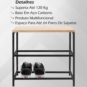 Banco Sapateira Industrial Em Aço F84 Pinus, ideal para qualquer ambiente, excelente solução para decorar e otimizar pequenos espaços, com design moderno e funcional. Estrutura em madeira Pinus e Aço Carbono, com pintura em acabamento Epóxi (Fosco). Composta por tampo em Madeira Pinus, e estrutura em Aço Carbono com espaço disponível para até 04 pares de sapatos, é um produto multifuncional serve também de banco para sentar. Suporta até 120 Kg. Seu quarto, sacada, hall de entrada vai ficar muito mais organizado com esta sapateira estilo industrial. Este móvel chegará na sua casa separado em 01 volume.
