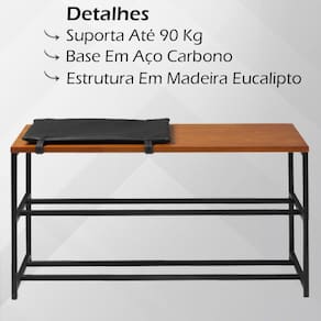 Banco Sapateira Em Aço Preto Com Almofada I19, ideal para qualquer ambiente, excelente solução para decorar e otimizar pequenos espaços, com design moderno e funcional. Estrutura em Madeira Eucalipto e Aço Carbono, com pintura em acabamento Epóxi (Fosco). Composta por tampo em Madeira Eucalipto, e estrutura em Aço Carbono com espaço disponível para até 06 pares de sapatos, é um produto multifuncional serve também de banco para sentar. Suporta até 90 Kg. Seu quarto, sacada, hall de entrada vai ficar muito mais organizado com esta sapateira estilo industrial. Este móvel chegará na sua casa separado em 01 volume.