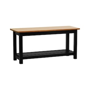 Banco Sapateira Viena Madeira Maciça Assento Madeira Preto/Amêndoa
