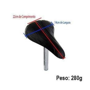- uso: urbano/lazer - fixação: canote fixo - material: base plástica e espuma de poliuretano pu - medidas: 220mm x 140mm x 70mm -canote metálico de fixação - cor: preto - peso aproximado: 280g