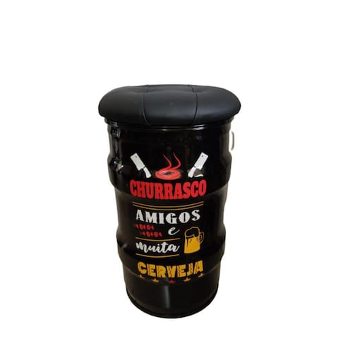 Capacidade 50 litros Material aço Pintura automotiva Pintura interna e externa Tampa removível Tecido da almofada: curvin automotivo Logo com adesivo de vinil de alta resistência Borracha protetora embaixo para não riscar o piso Resistente a sol e chuva Marca: Emporio Canto Do Churrasco Ean: 7892530000406