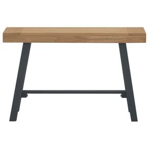-?Toque rústico?: Um acabamento rústico no banco de teca marrom contrasta facilmente com as pernas pintadas de preto para um apelo chique em sua sala de estar ou escritório
