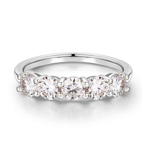 - Design: um anel de aniversário de moissanita de 5 pedras brilhante projetado com cinco 3,75 mm redondo D Color VVS1 Clarity Lab Criada outras pedras Moissanite em uma configuração de pinos compartilhados, o anel de casamento de prata esterlina S925 sólido em ouro branco 14K é confortável o suficiente para expressar seu amor todos os dias, seja deslumbrante sozinho ou empilhado com seus favoritos.