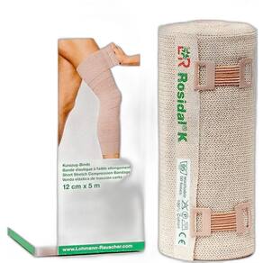Bandagem De Curto Estiramento E Alta Compressão Lohmann & Rauscher Rosidal K 12cm X 5m Rosidal® K é uma atadura têxtil elástica de alta compressão e de curto estiramento, que exerce uma alta pressão de trabalho, assegurando a compressão do sistema venoso profundo conforme paciente se movimenta. é composta de 100% algodão, fácil de lavar e de limpar. Rosidal® K é indicada para enfaixamento compressivo na flebologia, no tratamento de linfedema agudo e crônico e no suporte e alívio de pressão na traumatologia e na medicina esportiva. Marca: Não Informado