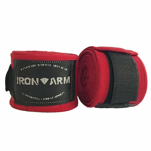 Bandagem elástica iron arm vermelha 3mx50mm desenvolvida com matéria prima flexível, garante maior aderência e conforto para os punhos e mãos do atleta. Fechamento com tiras aderentes, ideal para usar para a pratica de boxe e muay thai e para proteção do punho em atividades físicas em geral. Tamanho 3m por 5 cm cor vermelha vendido a unidade.