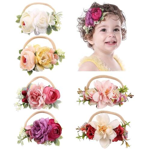 Pacote com 6 faixas de nylon superelásticas Cinaci, delicadas flores de rosa, acessórios de cabelo para meninas, recém-nascidos,