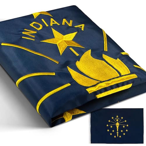 Quando a bandeira do estado de Indiana chegar à sua casa ou empresa, você verá imediatamente o incrível acabamento. Lindamente construído com estrelas bordadas e listras costuradas!