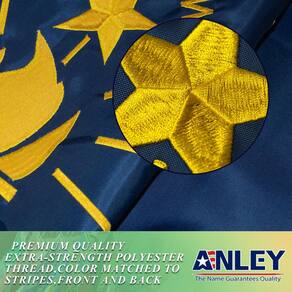 Esta bandeira tem 4 fileiras de costura na extremidade voadora e dois fortes ilhós de latão na cabeça para melhorar a durabilidade. É garantido que voará por muito tempo!