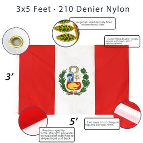 - Especificação - Importada. Feito de 100% nylon. O pacote contém uma bandeira peruana de nylon pesada Anley 3x5 Ft Everstrong.