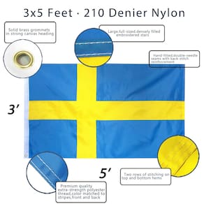 - Especificação - Importada. Feito de 100% nylon. O pacote contém uma bandeira da Suécia bordada Anley de 3 x 5 pés