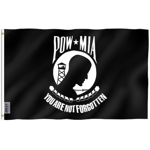 Bandeira Anley Fly Breeze de 3 x 5 pés POW MIA — Cor viva e à prova de desbotamento — Cabeçalho de lona e costura dupla — Você não está esquecido: bandeiras de prisioneiro de guerra, poliéster com ilhós de latão, 3 x 5 pés